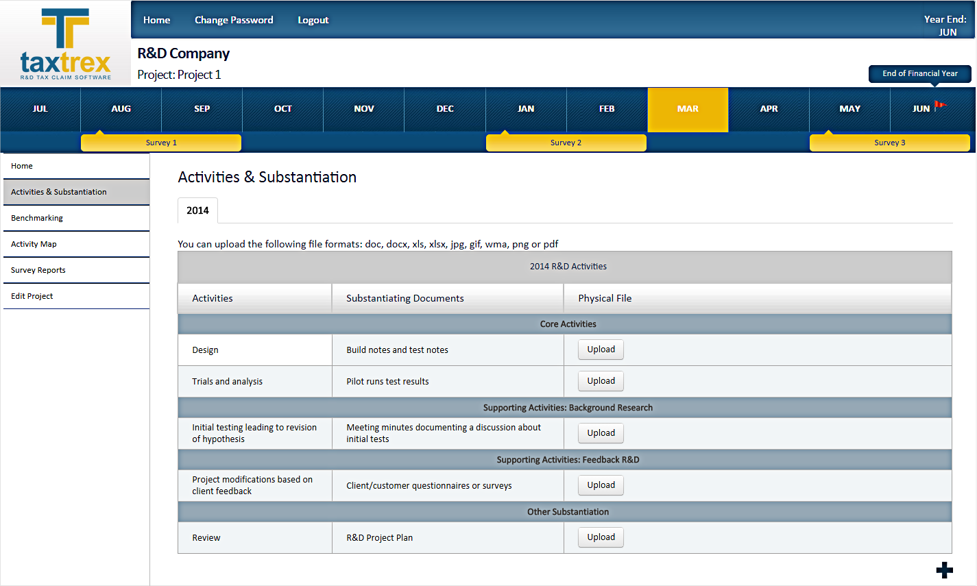 The TaxTrex survey system prompts you to identify documents such as research papers, design iterations and technical feedback that are relevant to your research project. You can then upload and save these documents to the document storage facility. In the event of an audit, you can rest assured that all your important documents are located in the one place.
