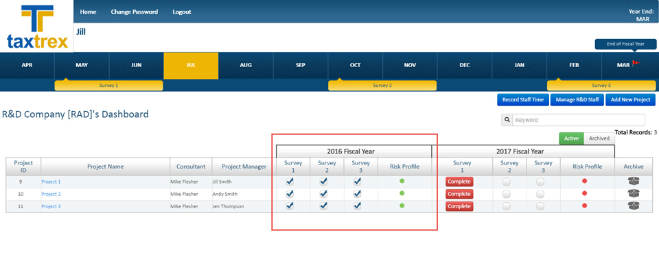 TaxTrex’s real-time risk assessment algorithm goes over the information collected from the surveys and creates a risk profile for the R&D claim. The algorithm evaluates the status of the claim and alerts you if an action is necessary. If any issues arise, Swanson Reed’s R&D experts will be available to help you ensure your R&D claim is quickly back to good standing. <watch video>
